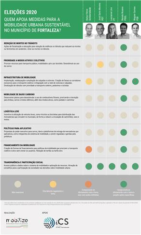 Referência nacional na adoção de práticas de mobilidade sustentável, Fortaleza não transparece esse avanço nas propostas dos cinco candidatos que lideram as pesquisas de intenção de voto. Entre os programas de Wagner Souza Gomes (PROS), Luizianne Lins (PT), José Sarto (PDT), Renato Roseno (PSOL), e Heitor Férrer (PSL), apenas o texto de Renato Roseno atende à quase totalidade dos critérios de avaliação adotados pelo Mobilize na análise que está realizando em várias capitais do Brasil.