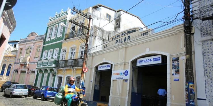 A entrada, na parte Baixa está localizada no Centro do Comércio e deixa o passageiro no Terreiro de Jesus, no Pelourinho. A saída fica na lateral da Catedral Basílica de Salvador (Foto: Pref. de Salvador)