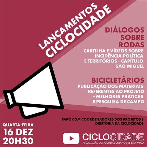 Os Cadernos serão lançados no dia 16/12, as 20h30, em uma live no canal Youtube da Ciclocidade