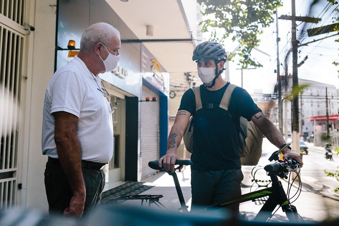 O trabalho com entregas, para a maioria, tornou-se uma saída, mesmo sob condições às vezes complicadas. Muitos, por exemplo, usam bicicleta alugada, não têm seu equipamento. O jeito é lutar pela melhoria das condições para essas pessoas. Nessa convivência com esse pessoal, também tenho observado que muitos adaptam uma espécie de motor na bicicleta, e circulam pelas ciclovias na velocidade acima do permitido. Um problema isso, principalmente na Paulista, onde há muitos semáforos e pedestres atravessando. O que faço é tentar instruí-los, até porque já presenciei acidentes, e isso é péssimo. Com esse motor, a bicicleta ultrapassa fácil os 20 km por hora. Então acho importante explicar, ao menos para que tenham consciência desse risco.