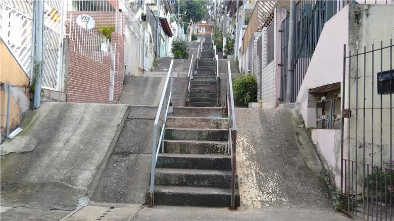 Ladeira em bairro periférico de São Paulo: onde está o lugar do pedestre? Foto: José Osvaldo Ferreira Martins