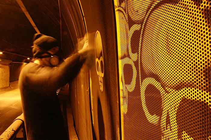 Intervenção (de limpeza) realizada em 2006 pelo artista Alexandre Orion sobre a capa de poluente depositada nas paredes de um tunel, em São Paulo. A obra foi rapidamente apagada pelas autoridades. Mais info em www.alexandreorion.com/ossario