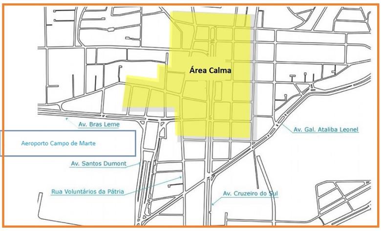 A Área Calma de Santana (veja mapa da Prefeitura, abaixo) conta com 18 projetos, englobando o entorno do Terminal de Ônibus e Estação de Metrô Santana, assim como as seguintes vias: Rua Voluntários da Pátria; Rua Darzan; R. Conselheiro Saraiva; R. Dr Cesar; R. Leite de Moraes; R. Ezequiel Freire; Av. Cruzeiro do Sul; R. Gabriel Pizza; R. Olavo Egídio.