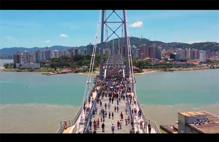 No dia em que completa 95 anos, a ponte Hercílio Luz, em Florianópolis, passa a receber o trânsito de carros sem qualquer limitação.