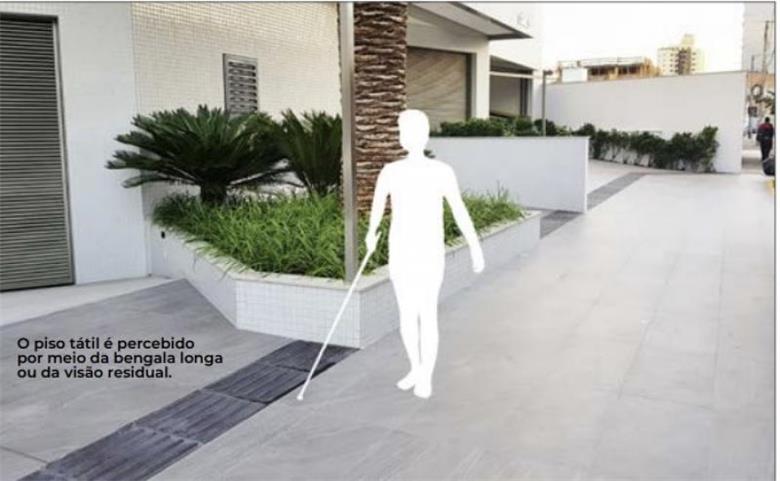 Segundo ela, "em São Paulo, o piso tátil direcional, que é aquele elemento que está na continuidade do limite do lote, é colocado no eixo do caminho, seja este percurso situado num passeio ou mesmo nos trajetos para se chegar na área de embarque do transporte, como o metrô por exemplo."