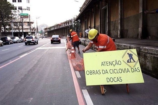 Ciclistas se vestem de operários e chamam a atenção da mídia, em luta por ciclovia na região das Docas. Foto: Acervo Luiz Son