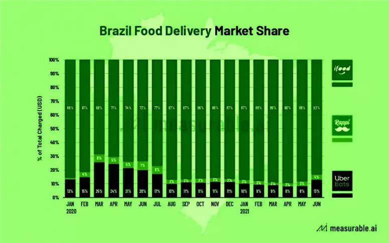 Gráfico mostra o desempenho dos apps de entregas de comida no Brasil