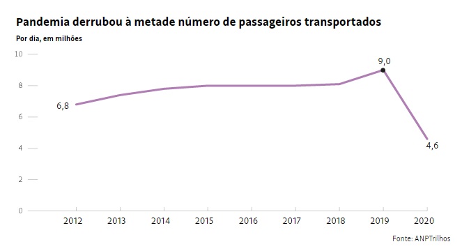 A pandemia do coronavírus ainda derrubou a demanda e fez o setor viver sua maior crise em 2020, acumulando um déficit de R$ 8 bilhões só com tarifas e congelando as inaugurações. O metrô de Salvador, por exemplo, ainda carrega 30% menos passageiros do que em 2019.