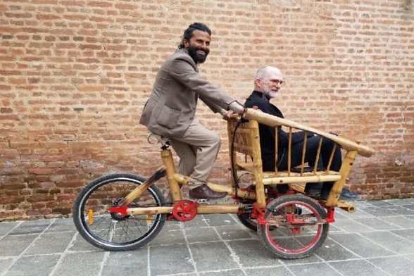 Projeto anterior de Lance Rake, triciclo elétrico de bambu foi concebido no Nepal junto com Nripal Adhikari, da Abari. Foto: Lance Rake