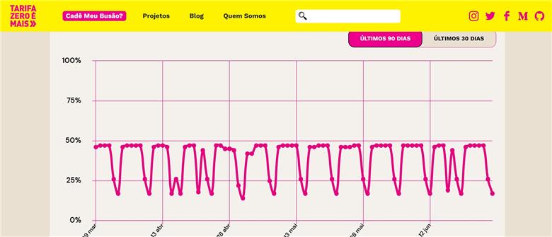 (1) A plataforma "Cadê meu Busão" é mantida pelo movimento Tarifa Zero BH. Trata-se de um recurso que lê - em tempo real - as informações de circulação de ônibus do sistema BH Trans e permite que as pessoas possam checar quantos ônibus estão nas ruas a cada momento do dia.