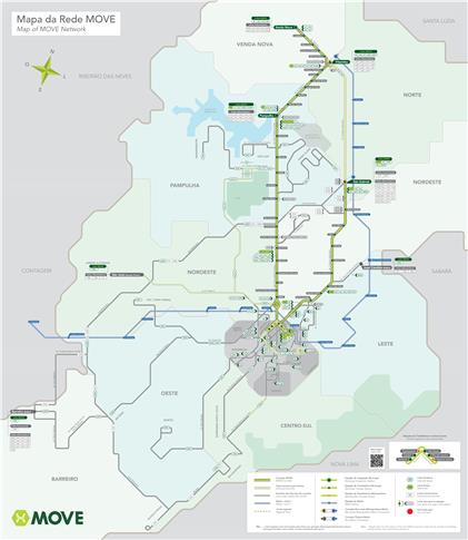 Mapa das linhas de BRT de Belo Horizonte. Clique para acessar. Imagem: BHTrans
