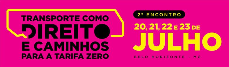 Entre os dias 20 e 23 de julho acontece em Belo Horizonte o "2º Encontro: Transporte como um direito e caminhos para a tarifa zero", organizado pelos movimentos Nossa BH e Tarifa Zero BH, Instituto Brasileiro de Defesa do Consumidor (Idec), Fundação Rosa Luxemburgo, Laboratório de Estudos Urbanos e Metropolitanos (Lab.Urb UFMG), Prefeitura de Caeté e Observatório das Metrópoles.