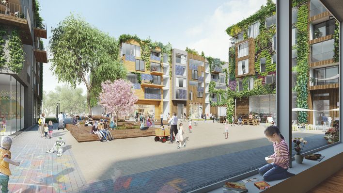 Constanze Döll explicou que as edificações do bairro serão construídas em madeira extraída de florestas plantadas localmente, para permitir o armazenamento de CO² a longo prazo e reduzir o consumo de materiais prejudiciais ao meio ambiente, como o concreto, afirmou.
