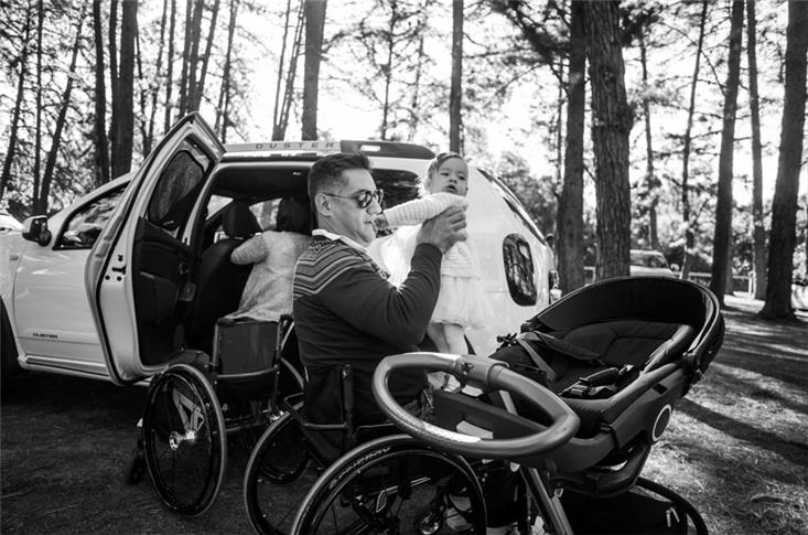 Ele explica por que o espaço reservado a deficientes no estacionamento é tão importante: "Você precisa ter um espaço, depois que abre a porta, para poder montar e desmontar a cadeira. Aquele espaço entre um carro e outro a gente sempre precisa usar. Por isso é muito complicado quando se chega em um shopping e tem uma moto parada na faixa zebrada ao lado da vaga."