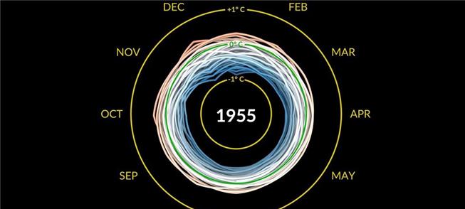 A 'Espiral Climática' é uma visualização projetada pelo cientista climático Ed Hawkins, do Centro Nacional de Ciências Atmosféricas da Universidade de Reading. A visualização apresenta as variações mensais da temperatura global entre os anos 1880-2021. Essas temperaturas são baseadas na Análise de Temperatura da Superfície GISS (Gistemp v4), uma modelagem estimativa da mudança global da temperatura da superfície. As anomalias são definidas em relação a um período base de 1951-1980.