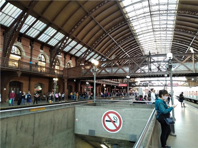 Olho no celular, passageira aguarda trem na Estação da Luz, em S. Paulo. Foto: Mobilize Brasil