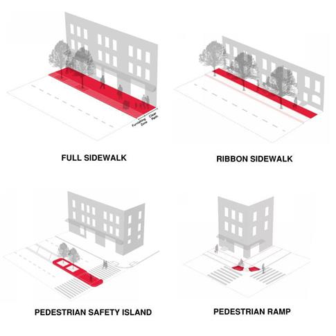 Diagramas de calçada para proposta em Nova York. Imagem: © NYC Department of Transportation