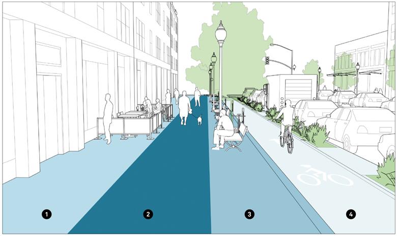 Muitas cidades nos EUA vêm desenvolvendo diretrizes ou cartilhas sobre como pensar o projeto de calçadas do futuro, observando se as reformas propostas integram metas de áreas sustentáveis, menos dependentes do carro e mais afeitas ao transporte público e ao ciclismo.