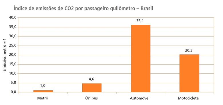 Comparação entre as emissões tomando como base o transporte de um passageiro em metrô elétrico Fonte: Ipea