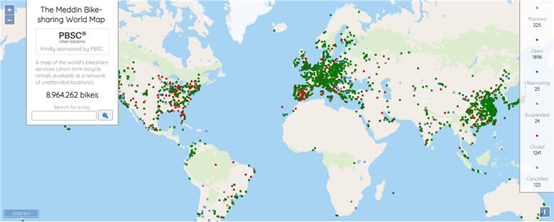 O Meddin Bike-Sharing World Map oferece informações sobre serviços de bicicletas públicas em todo o mundo. O coração da plataforma é um mapa, mas há também um arquivo de informações sobre o crescimento global do mercado de compartilhamento de bicicletas.