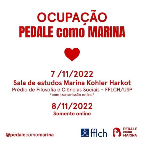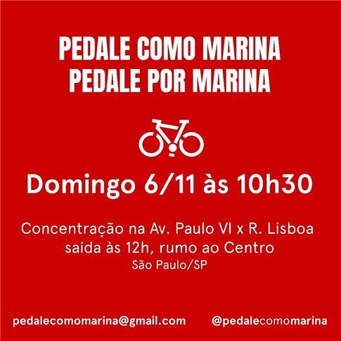 As ações, coordenadas pela Ocupação Pedale como Marina, serão abertas no próximo domingo (6) com uma pedalada na cidade de São Paulo. O convite diz o seguinte: "Nesse clima de promoção de uma cidade mais humana, feita para as pessoas, contra a carrocracia e a impunidade que convidamos todas, todes e todos a pedalarmos com e por Marina no dia 6/11. É [...] um pedal para todxs, num domingão, com música e alto astral - apesar da dor e da ausência, é assim que todos lembramos e celebramos Marina e seu brilho."