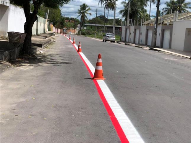 Obra de sinalização de ciclovia, em Pacajus (CE). Foto: Divulgação