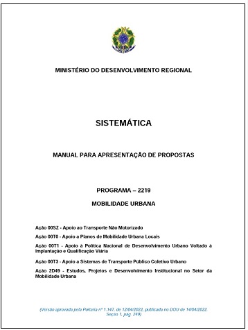 Os cadastros de propostas discricionárias estão disponíveis no site do Ministério das Cidades, onde as prefeituras podem obter o Manual de Processo seletivo, Manual do programa 2219 Mobilidade Urbana e realizar o Cadastro de Propostas.