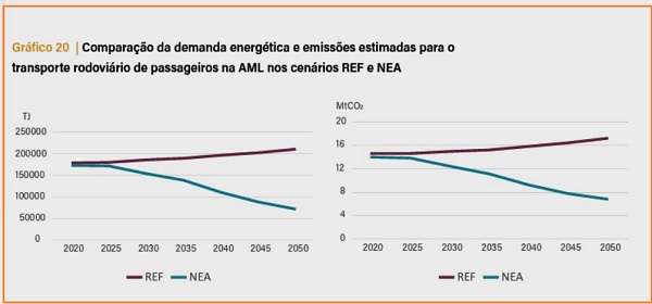 Gráfico comparativo de consumo energético e emissões em 2050 Fonte: WRI Brasil