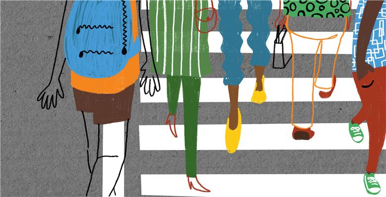 "As ilustrações de 'Vou a Pé' nos levam a explorar as cenas por outra perspectiva, ao representar a cidade a partir da altura de uma criança de três anos. É por esse olhar que descobrimos pequenos insetos, grandes degraus, poças d'água, um pouco de fumaça e muitas pernas e bumbuns", explica o texto de divulgação do livro.