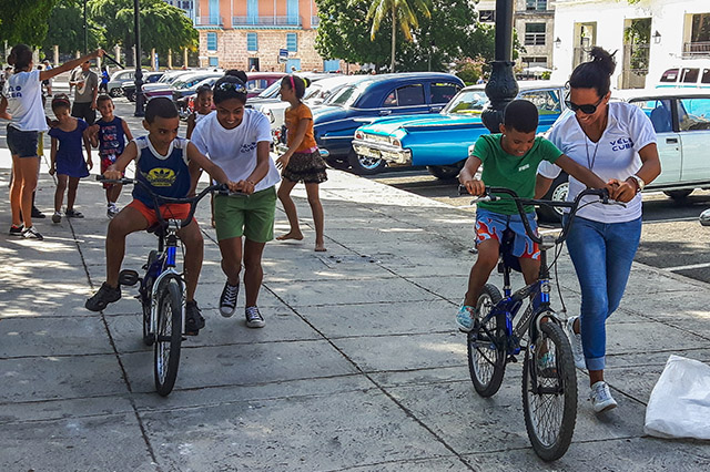 Atividade do Velo Cuba com crianças de Havana Foto: Velo Cuba