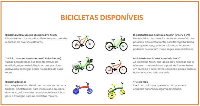 As bicicletas estão disponíveis em parques municipais, nas várias regiões da cidade, para uso exclusivamente em ciclovias e ciclofaixas de lazer e também no interior dos parques. Conforme a Prefeitura, em cada local, estarão disponíveis 120 bicicletas, desde mountain bikes para trilhas, triciclos e até bicicletas infantis, do tipo balance.