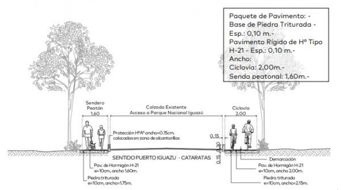 As obras de uma ciclovia que conectará a cidade de Puerto Iguazú à entrada do Parque Nacional Iguazú, que abriga as Cataratas no seu lado argentino, tiveram início nesta terça-feira (7).