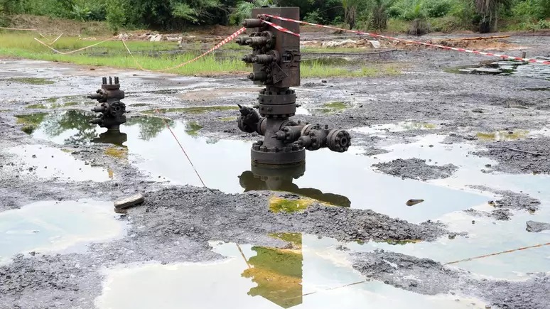Área contaminada por vazamento em instalações da Shell em 2012, na Nigéria Foto: AFP / BBC News Brasil