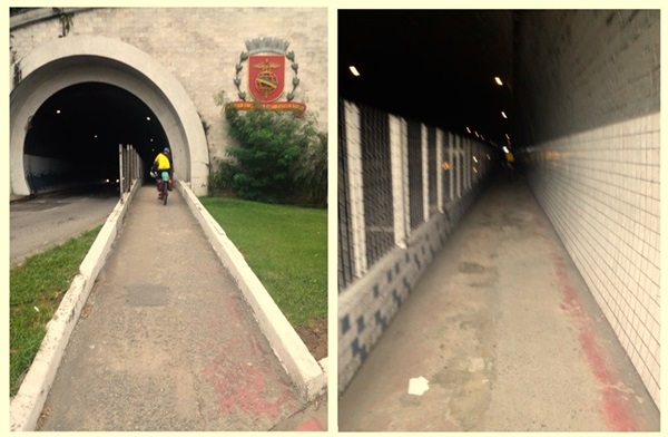 Outra visão tem a urbanista Suzana Nogueira, que coordenava a equipe de projetos cicloviários da Semob SP na gestão de Jilmar Tatto. Ela considera plenamente viável o alargamento da passagem existente para a criação de uma faixa para ciclistas, a exemplo do que se fez em Santos (SP), no túnel Rubens Ferreira Martins (veja foto).