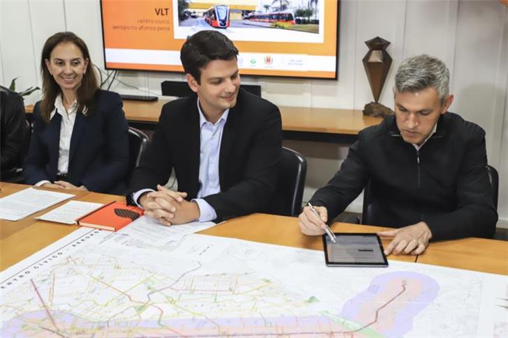 Assinatura do contrato com o BNDES para estudo sobre o VLT Curitiba-São José dos Pinhais. Foto: José Fernando Ogura/SMCS