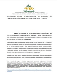 Para embasar as sugestões, o documento lembra que a Lei Orgânica do Distrito Federal determina que o sistema de transporte deve “subordinar-se aos princípios de preservação da vida, segurança, conforto das pessoas, defesa do meio ambiente e do patrimônio arquitetônico e paisagístico”. Além disso, segue o texto, "o Estatuto da Cidade garante o direito a cidades sustentáveis, para as presentes e futuras gerações, e a gestão democrática na formulação, na execução e no acompanhamento das iniciativas de desenvolvimento urbano."