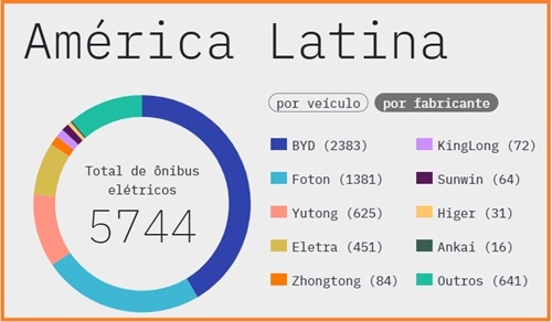 Apenas na capital chilena, Santiago, já existem mais de 2.400 ônibus elétricos, conforme detalhou o vice-ministro chileno Jorge Daza Lobos, em entrevista ao Mobilize Brasil. E o país se prepara para ampliar a eletrificação dos transportes, com trens, teleféricos, barcos, metrôs, além dos ônibus elétricos e bicicletas eletroassistidas. Na Colômbia, conforme o E-Bus Radar, já são quase 1.600 ônibus elétricos, entre trólebus, veículos a bateria, e motorizações híbridas. No Brasil, a Região Metropolitana de São Paulo conta com a maior frota do Brasil. São 477 ônibus elétricos, metade deles trólebus, com predominância de veículos produzidos no país, pela brasileira Eletra, seguida pela chinesa BYD.