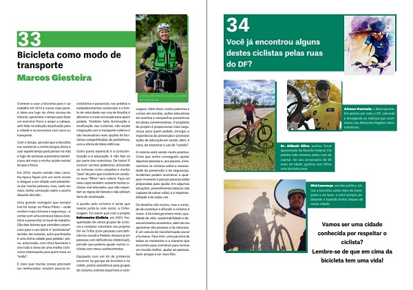 "Seria demais sonhar que um dia grande parte das crianças fosse para a escola de bicicleta, com os seus coletes fosforescentes alegrando a cidade? Ou que servidores públicos e trabalhadores em geral fizessem o trajeto, ou parte dele, para seus locais de trabalho da mesma forma, transitando por ciclovias seguras, conectadas e bem iluminadas? Ou, ainda, que a bicicleta fosse a primeira opção para os deslocamentos de curta e média distância e que os ciclistas pudessem contar com bicicletários e paraciclos espalhados pelas ruas?