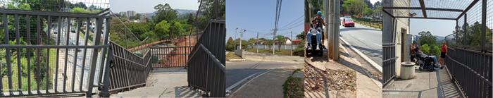 A distância entre minha casa e o Colégio Objetivo é de apenas um quilômetro, que pode ser percorrida a pé em 17 minutos segundo o Google Maps. Mas, demoramos mais de uma hora nesse trajeto. No começo estava indo bem, apesar da calçada ser estreita e ter postes no meio. Daí começaram os problemas. Primeiro veio um cruzamento sem faixa de pedestres nem rampa de acesso. Descemos a cadeira na avenida, onde os automóveis trafegam em alta velocidade, para atravessar. Depois piorou, pois tivemos que percorrer um trajeto com a cadeira na avenida na contramão, já que passa um túnel por baixo e, neste trecho, não tem calçada. Como minha cadeira motorizada sozinha pesa 200 kg, andamos na avenida até chegar no ponto de ônibus, onde tivemos que pedir ajuda para levantar a cadeira e subir no meio fio. De volta à calçada, acessamos a passarela de pedestres, que possui um elevador com o símbolo para PCD. Mas, fica a pergunta: como podem pensar em colocar um elevador para pessoas com deficiência e não lembrarem de instalar uma simples rampa nas calçadas em volta?