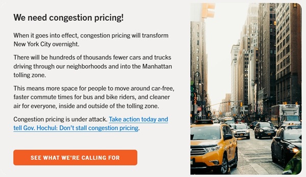 Campanha em defesa do pedágio urbano em Nova York Imagem: Reprodução
