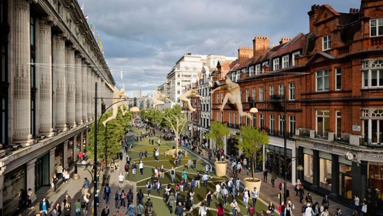 Projeto da Oxford Street para pedestres, em esboço de 2018 Imagem: Reprodução