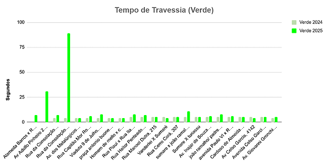u O tempo médio de luz verde subiu de 4,7s (2024) para 5,8s (2025), um ganho de apenas 1 segundo.