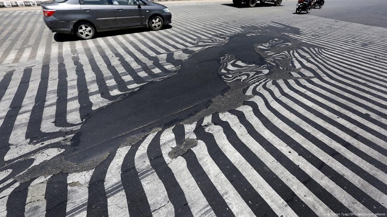 Asfalto e marcação deformados pelo calor em rua na Índia Foto: Harish Tyagi/EPA/dpa/picture alliance