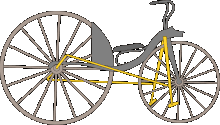 Velocípede: o francês Pierre Lallemente aumenta a roda dianteira, para deixar a pedalada mais leve. Pierre Michaux cria a primeira fábrica. Em 1867, surgem rodas com aro de aço, freios e tração traseira por corrente. Mas, mesmo com o surgimento do modelo com correntes, a larga produção de velocípedes de Pierre Michaux tornou o seu modelo mais popular. Surgem também as bicicletas com rodas gigantes na frente e minúsculas atrás.