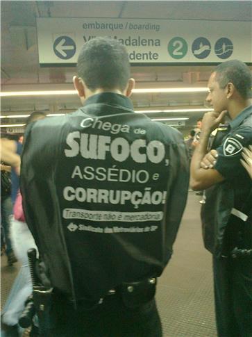 Durante todo o dia, os funcionários seguiram vestindo coletes pretos com a mensagem que pedia "Transporte no padrão Fifa". Nas costas, a lembrança: "Transporte não é mercadoria".