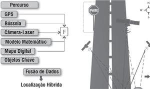 Segundo a pesquisadora, o sistema híbrido de localização é composto por vários tipos de sensores de baixo custo, que se apoiam em informações adicionais de mapas digitais armazenadas em um banco de dados que possibilita o reconhecimento de objetos-chave utilizados para melhorar a precisão da posição de um veículo terrestre.
