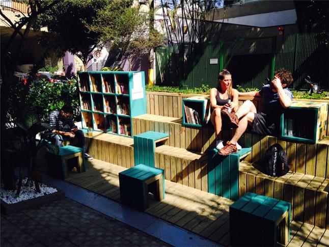 A disposição do mobiliário é muito importante, de forma a acomodar vários tipos de usuários. A questão é como transformar espaços em lugares. O espaço pode ser criado pelo arquiteto, mas os lugares são criados pelas pessoas, porque aqueles espaços comunicam alguma coisa, acolhem, formam um nicho de conforto. Por exemplo, colocar bancos com encostos e alguma vegetação nas proximidades. Descobrimos também que casais de namorados são um bom indicador, porque as pessoas precisam se sentir seguras para conversar e namorar. Dispusemos o mobiliário como uma sala de família, por exemplo. E criamos outros pontos - mais distantes - para leitores, que querem estar mais sozinhos. E o mobiliário precisa ser muito racional, de forma a acomodar todos esse usos em apenas 22 m2, que é a área de um parklet.