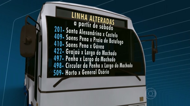 A linha 497 (Penha - Cosme Velho) passa a ser 497 (Penha - Largo do Machado).
